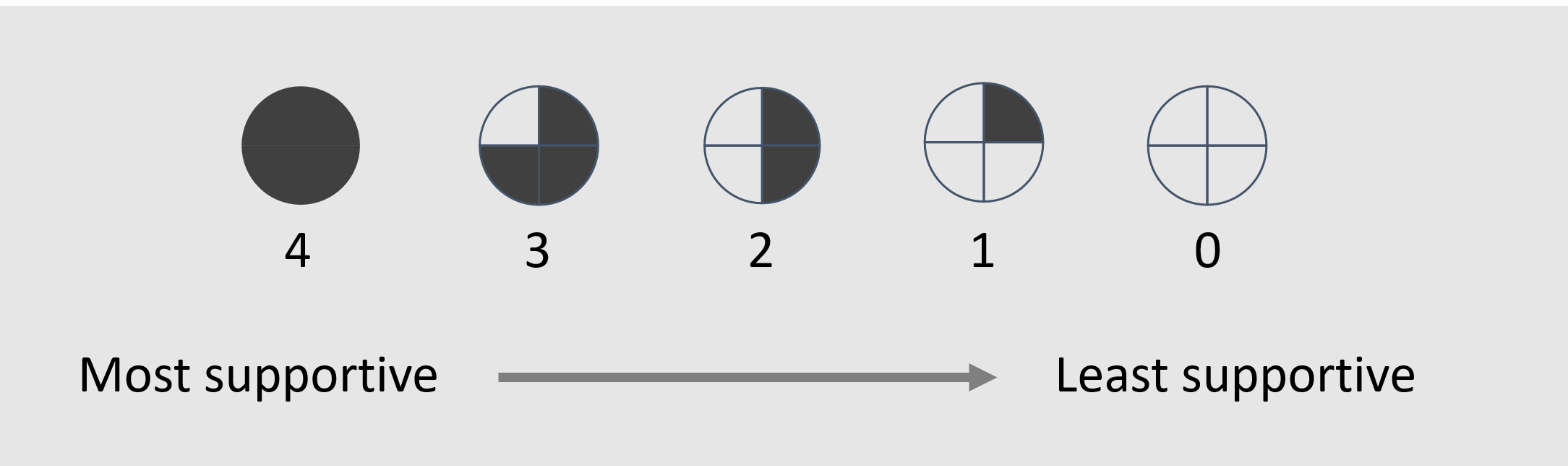 Each alternative road improvement is evaluated using a four-point scale: 4 points being the most supportive and 0 points being the least supportive